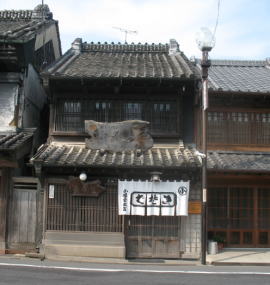 - 土蔵作りの商家が並ぶ。良心的な商いの町のよ